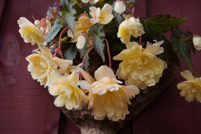 I do water regularly the plants in containers, including this Begonia growing in a sconce beside the back door. I’m not terribly enthralled by it…the flower colour is too pale and nondescript. Boring, even. I was hoping for a brighter, more fluorescent yellow. Like a highliter.