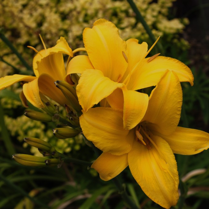 Looking as if nothing is wrong in the world today is one clump of yellow daylilies…seed-started quite a few years ago, the clump gets larger and larger every year and seems quite happy.