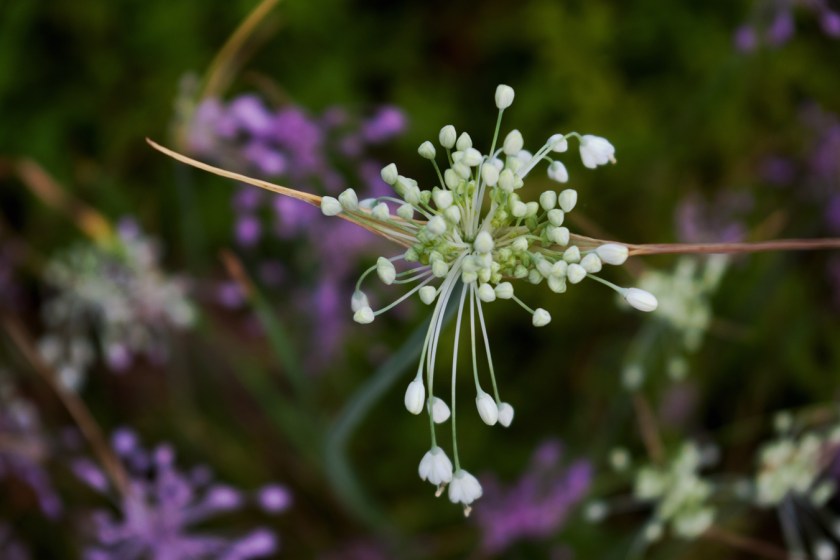 One of my favourite summer Alliums is Allium carinatum – aka keeled garlic. It’s short and fancy, comes in white or mauve, and looks good either up close and personal or en masse, which is easy to accomplish since it drops seed quite reliably. Very drought tolerant.