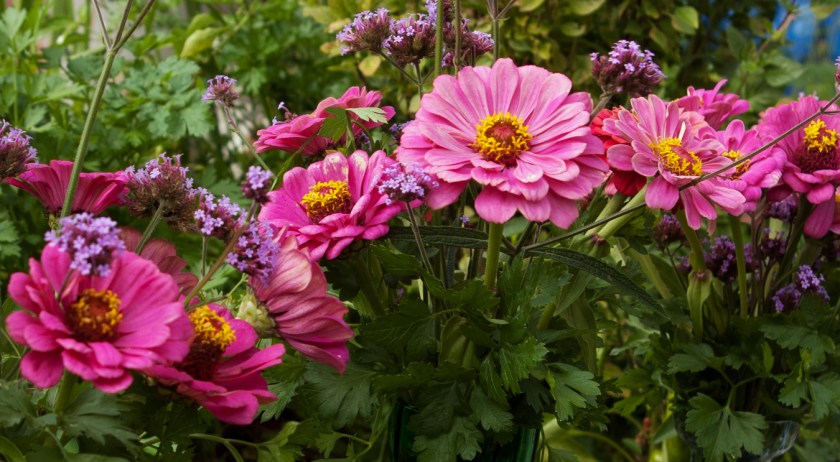 ‘I thought I’d cut the two or three dozen best looking Zinnia blooms’….I wish, Chris!!! 😂 Not surprisingly they are gorgeous, and are complemented by generous pickings of verbena. It’s a very impressive column of basil you have too. Do you celebrate Canadian Thanksgiving yourself, Chris?