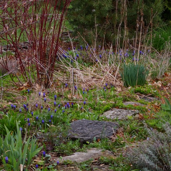 Less than a month of ‘official’ winter left this year, but at least two months until my garden starts to really wake up. Today’s pictures were taken last April 19; the photo above is a close up of Muscari latifolium – broad-leaved grape Hyacinth – which have naturalized really nicely in what I call the […]
