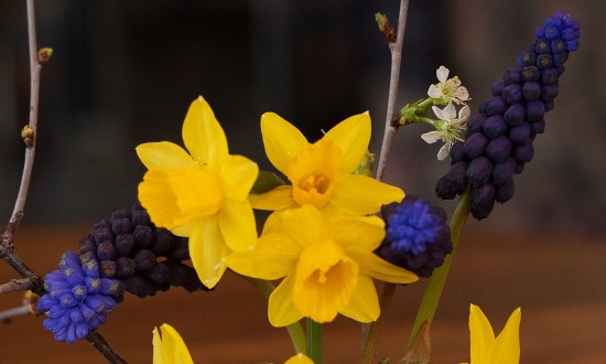 Yellow and white spring bulbs offer fragrance and colour in today’s vase.