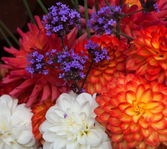 When I set out yesterday to snip some flowers for a vase (joining Cathy at Rambling in the Garden), I fully intended to gather an armload of goldenrod (Solidago sp, it started to bloom about a week ago) and have spikes of Verbena bonariensis poking through the golden yellow cloud. The picture in my mind […]