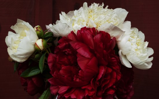 Last week I had a pretty glorious vase of red, pink and white peonies featuring P. Duchesse de Nemours from this largish clump: Then, overnight Thursday, it rained. A lot. And I woke up Friday morning to find this: Oh well…I quickly cut a bunch of the bent stems, trimmed them and plopped them into […]