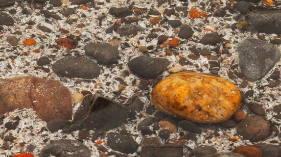 The lake isn’t frozen – yet – but with strong wind and high waves, small chunks gets washed ashore and form these metres high sculptural forms on the beach.